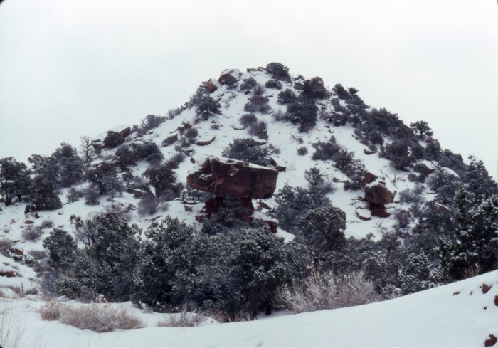 When the pioneers made the decision to proceed on in spite of the challenges of the terrain ahead, they sent out four scouts from Forty Mile Spring to plot the best path to their destination, Montezuma Fort, (about 120 miles away). The scouts, George Sevey, George Hobbs, George Morrell, and Lemuel Redd, took provisions for eight days. Thirteen days into their expedition, the scouts were lost and out of food. On Christmas morning, they climbed to the top of what has since been called Salvation Knoll. From that vantage point, they could see the Blue Mountains, the landmark they had been searching for for several days.
