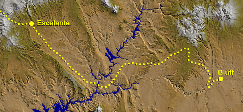 The 250-mile long trail runs from Parowan in southwestern Utah to Bluff and Montezuma Fort in southeastern Utah. The road was blazed during the winter of 1879-80 by 70 families who were answering a call from The Church of Jesus Christ of Latter-day Saints to establish a settlement in the Four Corners region. The first eight-five miles of their route from Parowan, Utah, to Escalante, Utah, was over established wagon roads. From Escalante, Utah, the last established town along their route, the colonizers blasted a trail through the Colorado River gorge, descended crevices, and crossed deep ravines, mountains, deserts, and forests - terrain so inhospitable many of their own scouts deemed it as impassable.
